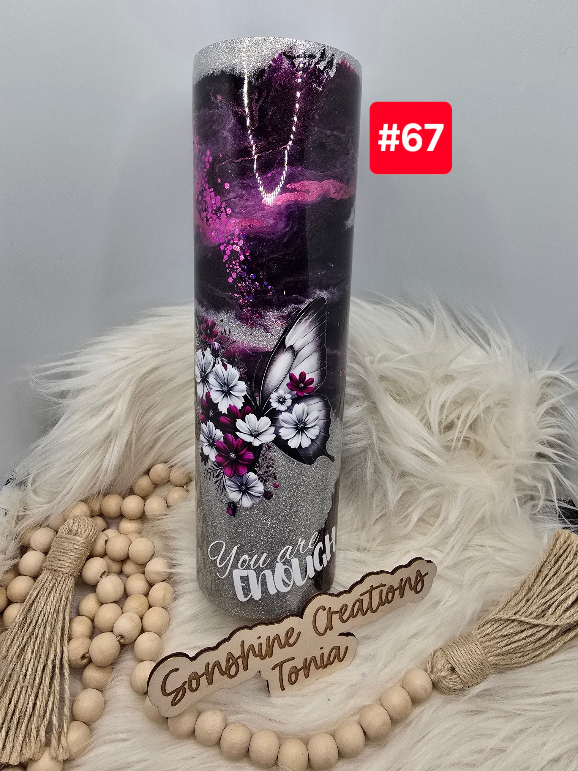#67- Live Sale 09/14/2025 - 35 oz. Skinny: Pink Black Butterfly You are Enough